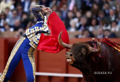 Матадор Мигель Ангель Перера во время корриды в Севилье. (Marcelo del Pozo/Reuters)