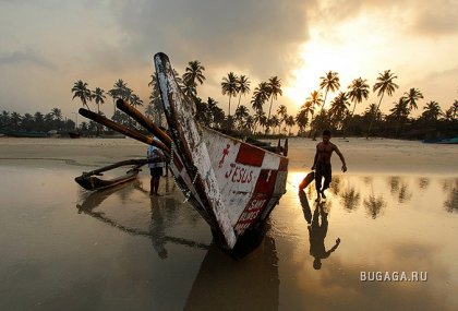 Рыбак возле традиционной рыбацкой лодки, Гоа, Индия. (Gurinder Osan /AP)
