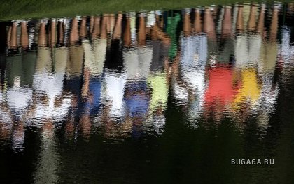Зрители у озера во время тренировочных минут впреддверии турнира Masters Golf 2010, Аугуста, Джорджия. (Chris O’Meara/Associated Press)