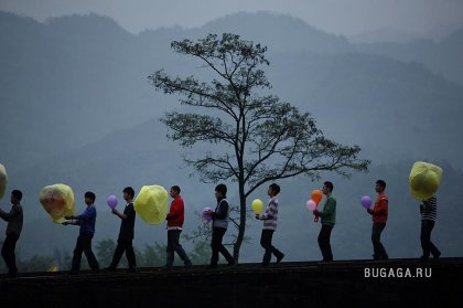 Китаайские жители, также в дань уважения жертвам землетресения, произошедшего в 2008 году в провинции Сычуань, принимают участие на Фестивале Воды в городе Дуцзянъянь. (Zheng Duo/Color China Photos/ZUMA Press)