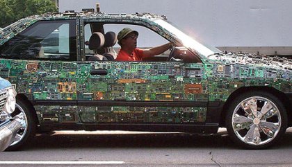 Автомобиль, инкрустированный монтажной платой. Смотрится прям как космический корабль )