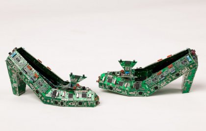 Художник Steven Rodrig создает из старых микросхем насекомых, кактусы, цветы и даже женские туфельки