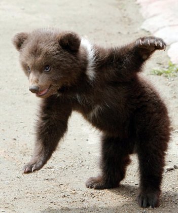 Трехмесячный медвежонок играет за пределами своего вольера в зоопарке в Ставрополя, Россия. (AFP /GETTY)
