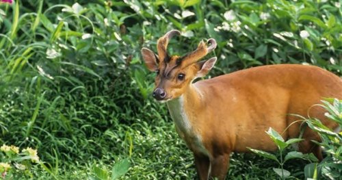 Хохлатого оленя можно легко узнать по пучку черной шерсти на лбу. Кроме того, у них есть самые настоящие клыки. Обитают эти зверьки в северо-восточной части Мьянмы и в центральной части Китая. На данный момент они еще не находятся под угрозой вымирания, но их привычная среда обитания уже начинает исчезать.