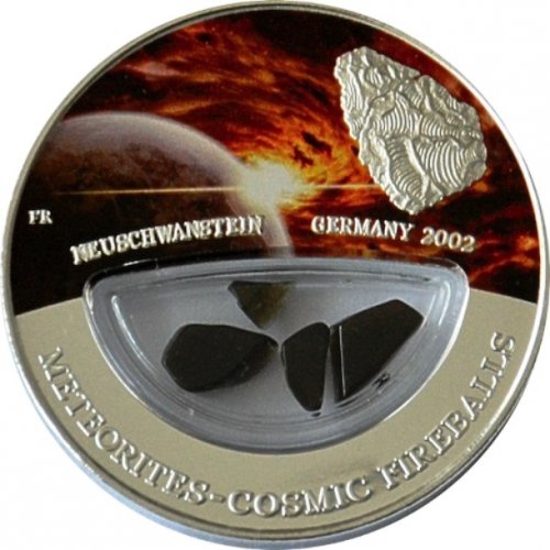 В 2012 году Республика Фиджи выпустила ограниченную серию 999 10-долларовых монет, изготовленных из стерлингового серебра, содержащего реальный кусочек Нойшванштайнского метеорита (Neuschwanstein). Метеорит упал на Землю 6 апреля 2002 года возле замка Нойшванштайн (Neuschwanstein Castle), на границе Германии и Австрии.
