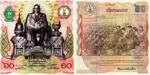В 1987 году банк Таиланда выпустил специальную серию банкнот достоинством в 60 бат в честь празднования 60-летия своего короля Рамы IX. Банкнота была квадратной. Её размер составлял 16 на 16 сантиметров. Она является одной из самых крупных банкнот в мире.