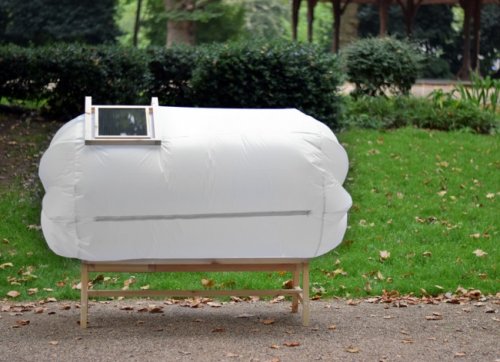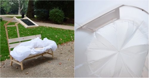 Скамейка, на которой можно скрыться от дождя или яркого солнца и подзарядить телефон от солнечной батареи. Дизайн – Thor Ter Kulve.