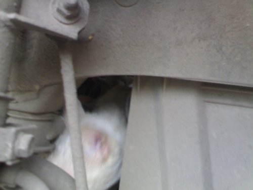 По словам девушки, она приехала с ним из Ногинска. В общей сложности животное "прокатилось" под капотом Гетца порядка 15 км.