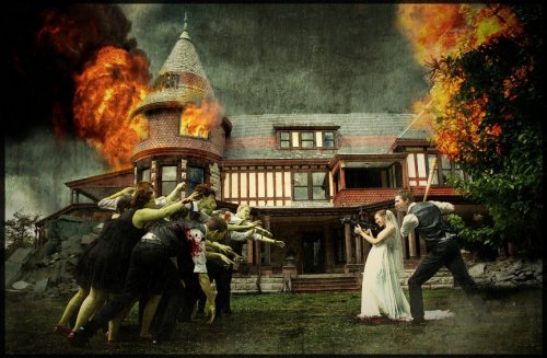 Джозия Мур, проживающий в Рочестере, штат Нью-Йорк, проникся мыслью сделать запоминающееся свадебное фото со своей новой женой Рути. На ум к нему пришла идея оформить все в стиле зомби-апокалипсиса, а для того, чтобы фото стало похоже на сцену из какого-нибудь голливудского фильма ужасов, ему пришлось потратить немало времени в фоторедакторе. Специально для тех, кто заинтересуется его идеей, он создал небольшое видео, где запечатлел свои манипуляции над фотоснимком: