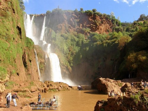 На кажущейся засушливой территории Морокко находится водопад Узуд, который расположен на фоне зелёных деревьев и коричневых утёсов и скалистых образований. Деревья на самом деле являются оливковыми деревьями, отсюда и произошло название водопада «Ouzoud», что переводится как «олива» с берберского языка. Высота водопада составляет 110 метров.