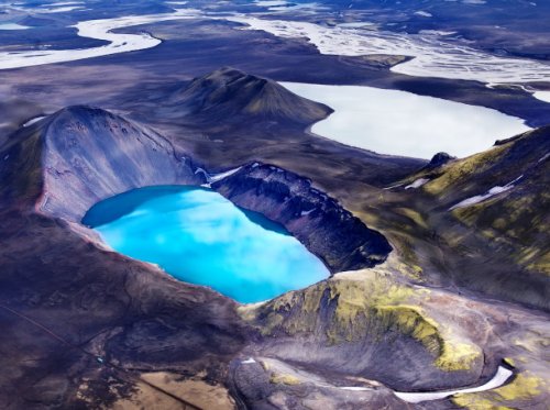 12. Что может быть прекраснее, чем вулканическая река? Вулканическое озеро. Во многих вулканах Исландии, особенно в западной вулканической зоне, в кратерах образовались кристально чистые озера.