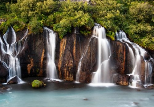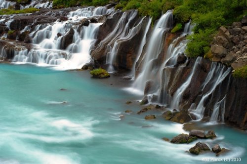 22. Водопады являются одними из самых легендарных особенностей Исландии. Хрёйнфоссар (Hraunfossar), серия водопадов, образованных речками, бегущими с расстояния приблизительно в 900 метров из плато застывшей лавы, является очень популярным местом для фотографов.