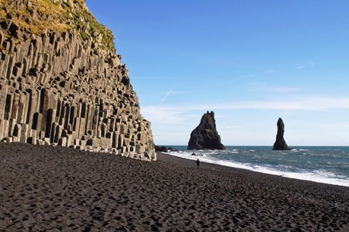 3. Как ни странно, Исландия также может похвастаться прекрасными пляжами. Это не тот тип пляжей, к которому вы, вероятно, привыкли, но их, безусловно, стоит посетить. Пляж Рейнисфьяра (Reynisfjara Beach), расположенный недалеко от деревни Вик (Vik) на южном побережье Исландии, с типичным чёрным базальтовым песком и завораживающими скальными образованиями, является одним из самых популярных.