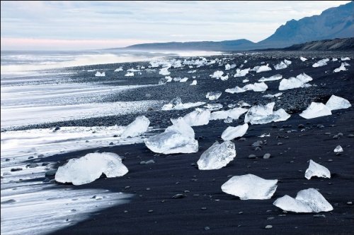 2. Тем не менее, поскольку лёд является настолько отличительной особенностью Исландии, вы также можете посетить эти прекрасные пляжи с разбросанными вокруг кусочками льда.