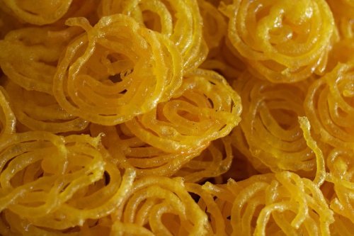Из-за того, что они выглядят как что-то среднее между жёлтыми червями и желеобразными кишками, джалеби совсем не кажутся аппетитными. Это блюдо очень популярно на юге Азии, на Среднем Востоке и на севере Африки. Джалеби готовят, обжаривая на фритюре жидкое тесто и пропитывая его в сахарном сиропе. Этот десерт совершенно определённо удовлетворит потребности самого ярого сластёны, но его нельзя кушать в больших количествах, так как джалеби содержит слишком много сахара и калорий.