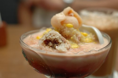 Рожки с ледяной крошкой и сахарным сиропом всегда были одним из самых любимых лакомств на вечеринках, но гурманы из Малайзии и Сингапура придумали что-то совсем невообразимое. Аис Касанг состоит из ледяной стружки, красной фасоли, сладкой кукурузы, личи, зелёного травяного желе и сгущённого молока. В результате получается разноцветный, приторно-сладкий десерт. Для украшения его также поливают клубничным сиропом, добавляя сладости в это и без того приторное сочетание.