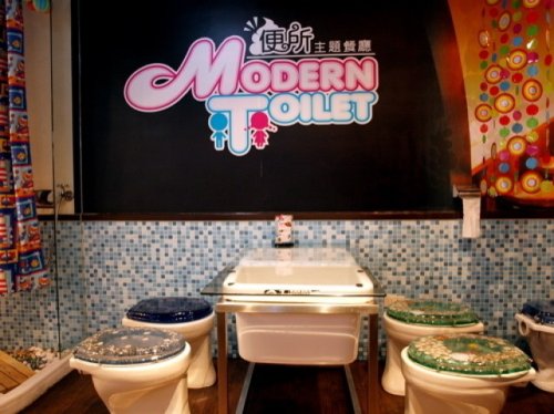 В своём стремлении быть уникальным ресторан «Современный Туалет» (Modern Toilet) в Тайбэйе (Taipei) был назван так благодаря тому, что официанты подают заказанные вами блюда в мисочках в форме унитазов. Однако миски отнюдь не такие странные, как сами десерты, которые содержат съедобные ингредиенты, но выглядят как (вы уже догадались) фекалии. Зелёная дизентерия это один из десертов ресторана из ледяной стружки, который украшается фруктовым соусом киви. Он выглядит как фекалии, но на вкус очень сладок!