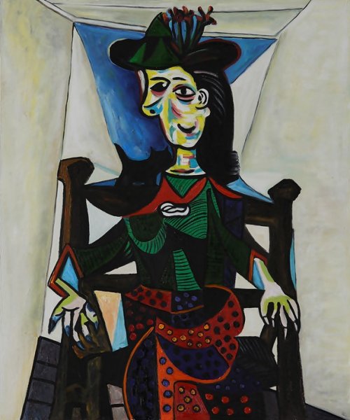 Картина «Dora Maar au Chat», также известная как «Дора Маар с кошкой», была написана Пабло Пикассо в 1941 году. На этой картине изображена любовница художника по имени Дора Маар, которая сидит в кресле с котёнком на плече. Размер этой картины составляет всего лишь 128,27 на 95,25 сантиметра, тем не менее, она была продана в 2006 году за 95 216 000 долларов.