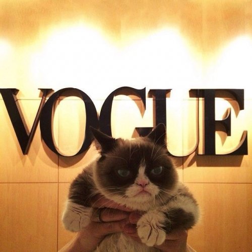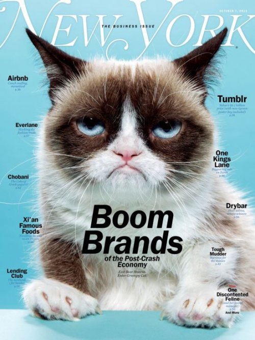 Став популярным мемом осенью 2012 года, образ недовольной кошечки быстро превратился в отдельный бренд и стал использоваться в журналах, книгах, сувенирах и другой продукции, где можно увидеть её мордочку.