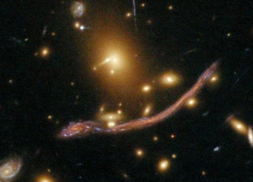 Этот впечатляющий пример формы в виде дракона, состоит из многочисленных изображений спиральной галактики, которая расположена приблизительно в 10 миллиардах световых лет от Земли.