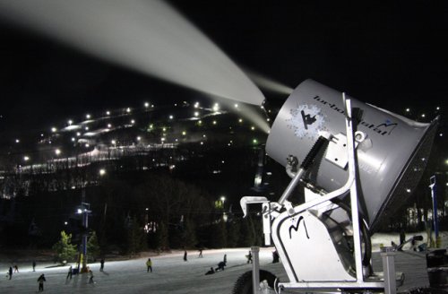 В 1961 году Олден Хэнсон (Alden Hanson) запатентовал снегомашину в которой использовался вентилятор для стрельбы снежинками на большие расстояния. В 1975 году аспирант Висконсинского университета обнаружил ещё лучший нуклеирующий агент: биоразлагаемый белок, который помогает воде образовать кристаллы льда. Другими словами: грязи. Так же как в случае песка и естественного снега, она была катализатором для того, чтобы вода замерзала в тёплую погоду. На сегодняшний день снегомашины («пушки») делают снег почти так же, как это делает Матушка-природа.