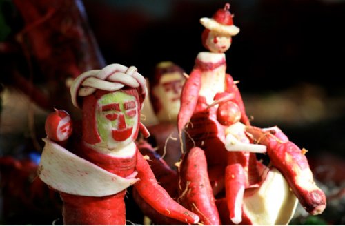 Для тех, кто испытывает нелюбовь к овощам на грядках, праздник под названием Ночь Редиса может прозвучать так, будто это название какого-то фильма ужасов. Тем не менее, это один из старинных праздников в Мексике, который празднуется на площади Оахаки с 1897 года. В этот день проводятся различные парады и фестивали с танцами. Но главным героем этого дня является, как вы могли уже догадаться, сам редис. Из редиса вырезают различных персонажей, сцены из преданий и легенд, и тому подобное. Обычно его выращивают специально для этого праздника. Вместо того, чтобы быть собранным в обычные сроки, редис оставляют в земле, где он разрастается до огромных размеров. Редис выкапывают, когда он достигает веса в 3 килограмма. Ночь Редиса обычно начинают праздновать 23 декабря и заканчивают в последние часы 25 числа.
