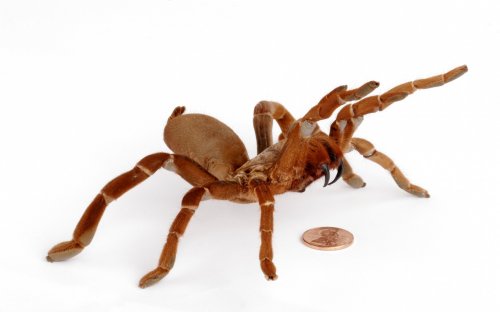 Учитывая его название, создаётся впечатление, что этот паук смертельно опасен, не так ли? Однако это не так. Его название говорит лишь о том, что пауки этого вида очень крупные по размеру. На самом деле, их диаметр может достигать 30 сантиметров. Интересен также тот факт, что этот тарантул зачастую питается другими насекомыми и лишь иногда мелкими мышами или ящерицами, которые ему встретятся. Как и другие виды тарантулов, птицеед-голиаф действительно выделяет яд при укусе, но его яд не является смертельно опасным для человека. Главная опасность для людей состоит в волосках на спине этого паука. Испугавшись, птицеед-голиаф трёт задними лапами своё брюшко и выстреливает в воздух облаком волосков, напоминающих крошечные иголочки. Эти маленькие шипы могут попасть вам в дыхательные пути и глаза, из-за чего вы будете чувствовать дискомфорт довольно длительное время.