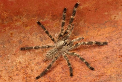 Ещё один тарантул, хотя этот вырастает «всего лишь» до 18 сантиметров в размахе лап. Этот паук обитает преимущественно в Индии, обычно на деревьях, где он охотится на свою добычу. Если говорить об этом виде в рамках содержания его в качестве домашнего животного, то, по мнению экспертов, он явно не подходит для новичков в этом деле. Отчасти это объясняется тем, что пауки этого вида всегда занимают оборонительную позицию при малейшем их беспокойстве и могут стать довольно агрессивными, если почувствуют угрозу. Кроме того, считается, что они обладают самым сильным ядом из всех тарантулов. Укушенные жертвы испытывают мышечные спазмы, боли в груди и симптомы, схожие с симптомами гриппа, которые могут продолжаться многие дни или даже недели после укуса.