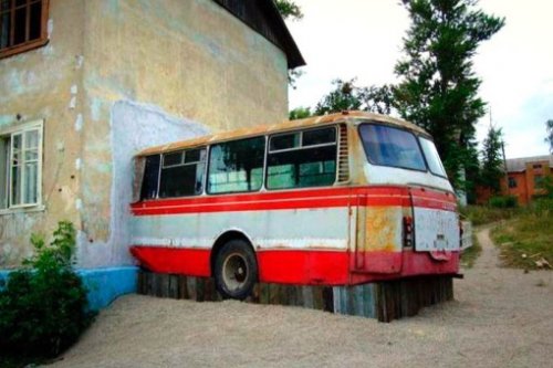 На этом фото показан пример того, как можно обойти многочисленные законы о пристройках. Все, что вам понадобится – старый автобус и прямые руки.