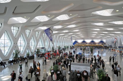 Новый аэропорт Марракеш Менар представляет собой великолепное зрелище сочетания модернизма и традиционной исламской архитектуры. Аэропорт, спроектированный компанией «E2A» из Марокко, выглядит снаружи как гигантские белые медовые соты. Инновационный дизайн отбрасывает великолепные тени во внутреннюю часть пространства, где пассажиры чувствуют себя так, будто они попали в другой мир. 72 фотогальванические пирамиды генерируют электричество на крыше, благодаря чему этот аэропорт не только привлекателен, но и эффективен.