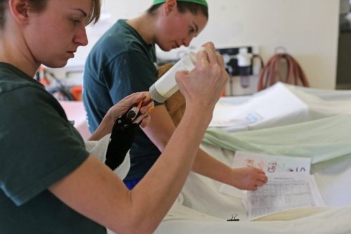 Работники чистят птицу в Международном центре по спасению птиц в городе Фэйрфилд, штат Калифорния 20 января 2015 года. (Фотография Роберта Гэлбрейта/Reuters)