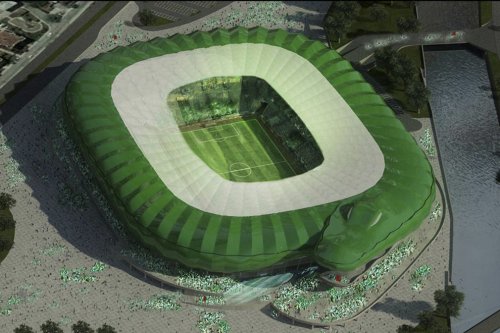 Для этого клуба возводится стадион, который своим фасадом вполне оправдывает прозвище "зелёных крокодилов". В тёмное время суток у огромного аллигатора горят глаза-фонари.