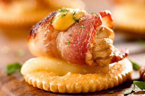 Если вы не любите сытные обеды, то закуска из маленьких кусочков курицы, завёрнутых в бекон, будет просто идеальной для вас. Кроме того, только взгляните на обилие сыра на Крекере «Ritz» - от одного вида просто текут слюнки!