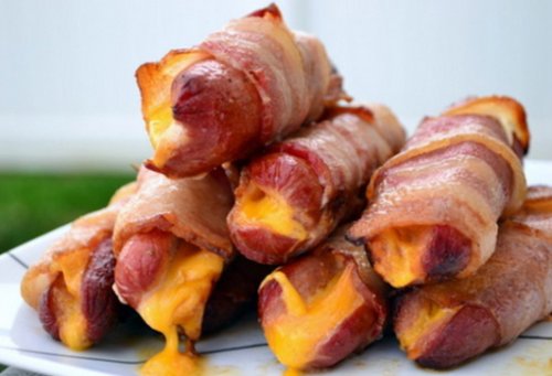 Можно поспорить, что такого лакомства все бы съели по целому подносу. Сосиски с сырной начинкой, завёрнутые в бекон! Это самое аппетитное блюдо во всём списке и по этой причине оно находится на первом месте!