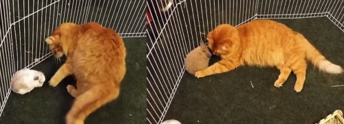 Согласно dailymail.co.uk, кот по кличке Манго не видит ничего плохого в том, чтобы быть приемным отцом. В конце концов, его самого вместе с братьями и сестрами бросили в подвале. Хозяин Манго приютил у себя его и его сестру по кличке Хлоя. И, судя по всему, Манго нашел свое призвание, теперь он помогает всем брошенным животным. Когда его хозяин решил разводить голландских вислоухих кроликов, Манго не остался в стороне. Он тут же забрался к новорожденным кроликам в клетку и принялся их вылизывать.
