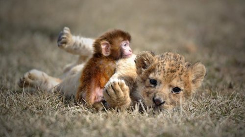 Это милое фото показывает, насколько привязаны друг к другу эти два звереныша. Их вырастили и вскормили вместе, поскольку их матерям не хватало молока. Это печальное обстоятельство сблизило их и сделало неразлучными.