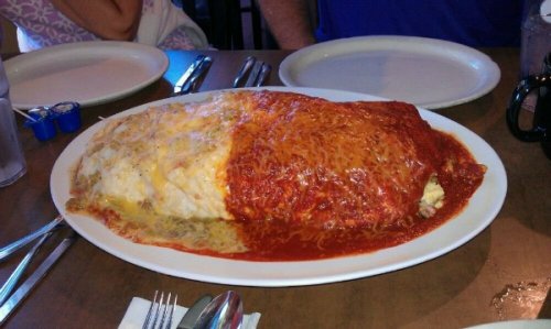 У крупных едоков обычно наблюдаются ненасытные аппетиты, но это не будет проблемой для любой женщины, которая сможет пройти вызов «3-килограммовый Буррито на Завтрак» в заведении «Jack-N-Grill», так как она будет обеспечена бесплатной едой в этом ресторане до конца своих дней. Конечно, не стоит и говорить, что подобный подвиг требует серьёзного стремления и подготовки. В буррито входит 2,26 килограмма картофеля, 450 граммов ветчины, дюжина яиц, целая луковица, перец чили и сыр. Адам Ричман из передачи «Человек против пищи» не смог скушать это буррито размером с младенца.