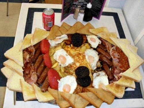 «Завтрак с ребёнка», весящий 4 килограмма, был назван именно так, потому что он весит столько же, сколько весит маленький ребёнок. Огромное блюдо может похвастаться омлетом из восьми яиц и картофеля, шестью жареными яйцами, 12 кусочками бекона, 12 колбасками, бобами, помидорами, грибами, 4 порциями драников, 4 кусками кровянки, жареной картошкой, четырьмя тостами, четырьмя кусками хлеба с маслом и четырьмя кусками жареного хлеба.