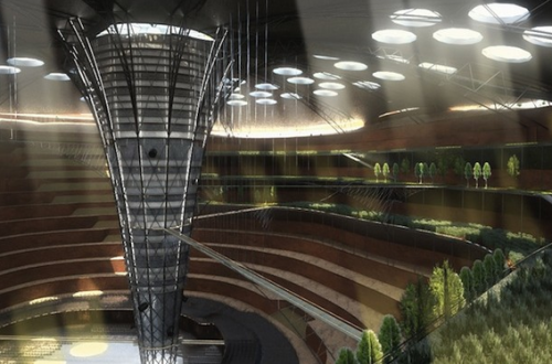 Как в случае башенных городов, о которых мы говорили ранее, Мексика планирует следовать тому же принципу, но в обратном направлении. Вместо того чтобы подниматься к облакам, они решили спуститься в подполье. Название «Earthscraper» («землескреб») по-видимому, было выбрано таким же образом. Архитекторы и инженеры планируют построить эту 65-этажную перевернутую пирамиду площадью в 7618 квадратных метров прямо в центре города Мехико. «Крышей» этого подземного здания будет панель из прозрачного стекла 240 на 240 метров, которая будет выступать в качестве общественной площади, по которой жители города смогут ходить и развлекать друг друга концертами, открытыми выставками или военными парадами.