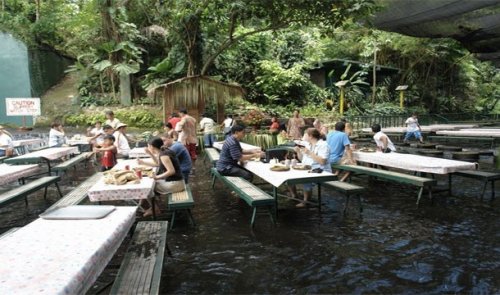 Чтобы отужинать здесь, вам придется разуться, поскольку столики здесь сервируют посреди настоящей реки!