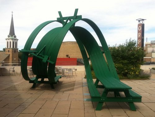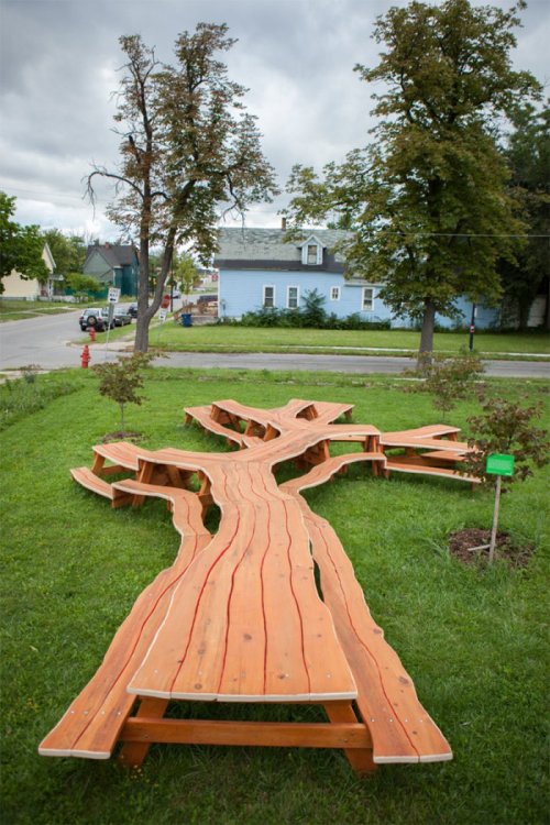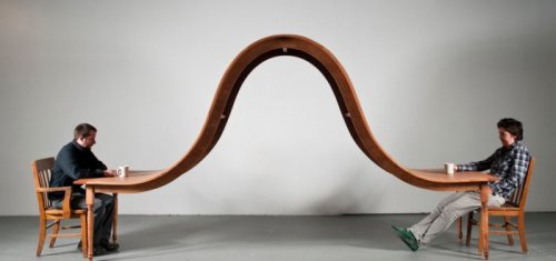 Сегодня мы хотели бы познакомить вас с оригинальным творчеством дизайнера Майкла Бейтца (Michael Beitz), создающего необычные столы, которые из разряда обычной мебели можно смело отнести к произведениям искусства. Среди его работ особо примечательны дизайн стола под названием "Не сейчас" ("Not Now") (первые 5 фотографий) и одна из последних работ Майкла Бейтца – 50-метровый стол в форме кроны дерева, который называется "Дерево для пикника" ("Tree Picnic") (последние 2 фотографии).