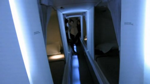 На Боинге-777 спальные места для экипажа располагаются вдоль длинного коридора.