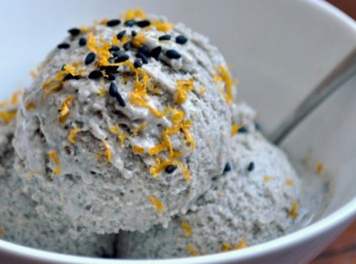 Мороженое со вкусом чёрного кунжута и апельсина