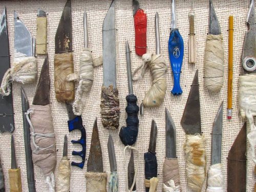 Коллекция заточек, обнаруженных в результате тюремных обысков