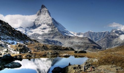 Маттерхорн, известный отличительной пирамидальной формой вершины, возвышается над швейцарским городком Церматт (Zermatt) и иногда называется горой всех гор.