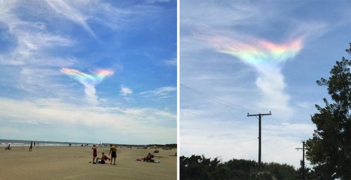 В прошлое воскресенье жители Острова Пальм (Isle of Palms) в штате Южная Каролина (США) увидели в небе редкое природное явление, известное как "огненная радуга". Вихревое разноцветное облако, появилось в небе и продержалось там около часа.
