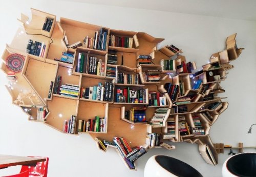 16. Говоря о книжных полках нельзя не упомянуть эту, которая станет желанным украшением любого американца-патриота, который любит рассматривать карту США.