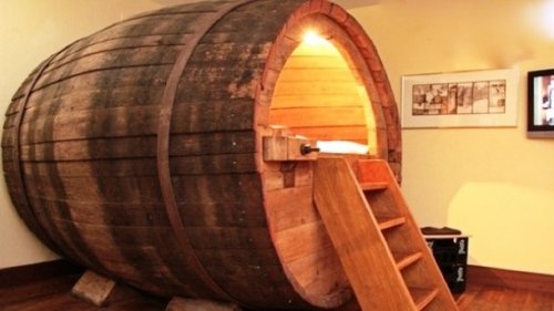 24. Любители вина определённо оценят эту необычную деревянную кровать, сделанную из винной бочки.