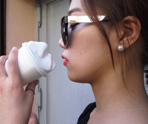 Многие люди испытывают тёплые чувства к своей утренней чашке кофе. Корейский дизайнер Джанг Ву-Сок (Jang Woo-Seok) подумал, почему бы не выразить эти чувства поцелуем в кофе и разработал дизайн крышки для стакана для кофе, назвав её "Возьми поцелуй с собой" ("Take 'Kiss' Out"). Пьёшь свой первый утренний кофе и выражаешь ему свои чувства!