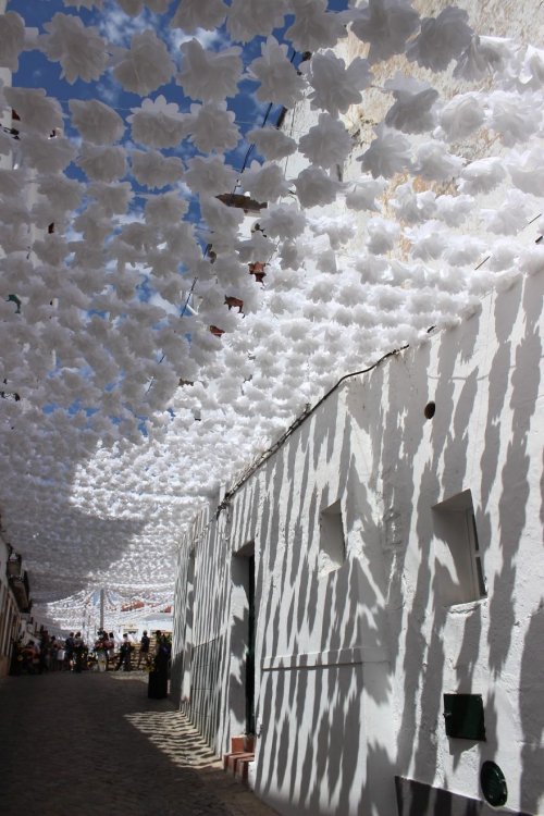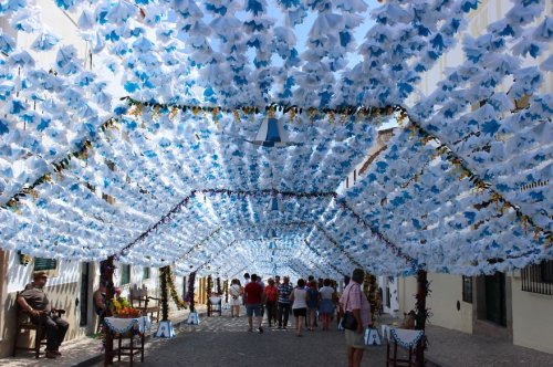 Говорят, жители городка работали над созданием этих бумажных шедевров 4 месяца. Пытаясь увидеть небо сквозь бесчисленное множество прекрасных бумажных цветов, можно понять, сколько терпения, усидчивости и бессонных ночей провели жители этого португальского городка, чтобы украсить его улицы.
